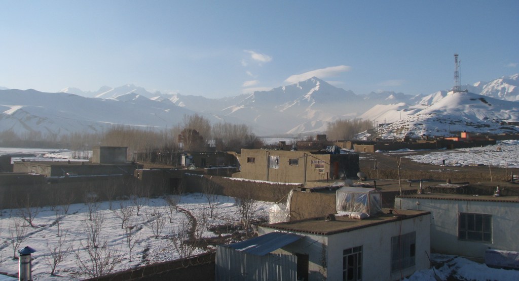 as only one other brave soul about who was washing a teapot in the lake. The unexpected benefit of our climatic situation was that the ice was thick enough to walk on. This we determined after much hesitation and some very enthusiastic jumping on the ice by the Afghans in our party. The sleet changed to a light snow and we had a marvelous time walking around on the ice in the middle of a giant lake. It was magical.Since we were in the company of a local (we had already run into his uncle on the way), we headed to a local house for lunch. On the way, the driver pulled us into a morass of mud he couldn’t get out of, and the adventure-van was well and truly stuck. Luckily, lunch was only about a 5 minute walk, so we abandoned the van and went to eat. Our friend’s cousin lived in a small, two-room house with glass windows and a spacious porch area covered in greenhouse plastic – a common practice for the winter. We sat down and were immediately offered tea, and then soon after a basin and water poured over our hands to wash. The room was cozy and warm and the cushions were comfortable. After some idle chat a blanket was spread on the floor in front of us and we were served huge flat pieces of naan, sour yogurt, broth with onions, chicken that had been cooked in the broth, slightly fermented sheep’s milk, and gargantuan piles of little fried fish from the lake. Everything was delicious, with the exception of the sheep’s milk. I have little idea of what the fish might’ve been, and I believe I’ve heard rumor that it’s not allowed to fish in the lake, but far be it for me to refuse a meal when I’m a guest. That discussion can be had outside of someone’s living room.